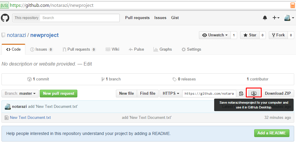 Alternatively, you can visit your account page eg https://github.com/notarazi and click the Repositories tab. Click the New button.